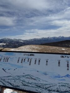 ビーナスラインに入ると景色が一変します。所々に積雪があり、スタッドレスタイヤを履いていて良かった場面がありました。そして霧ヶ峰富士見台に寄り道すると、眼前に八ヶ岳連峰がくっきりと、そして富士山と南アルプスまで素晴らしい眺望が広がりました。特に八ヶ岳の稜線が美しく、「ここで既に十分すぎる」と感じるほどの景色です。
