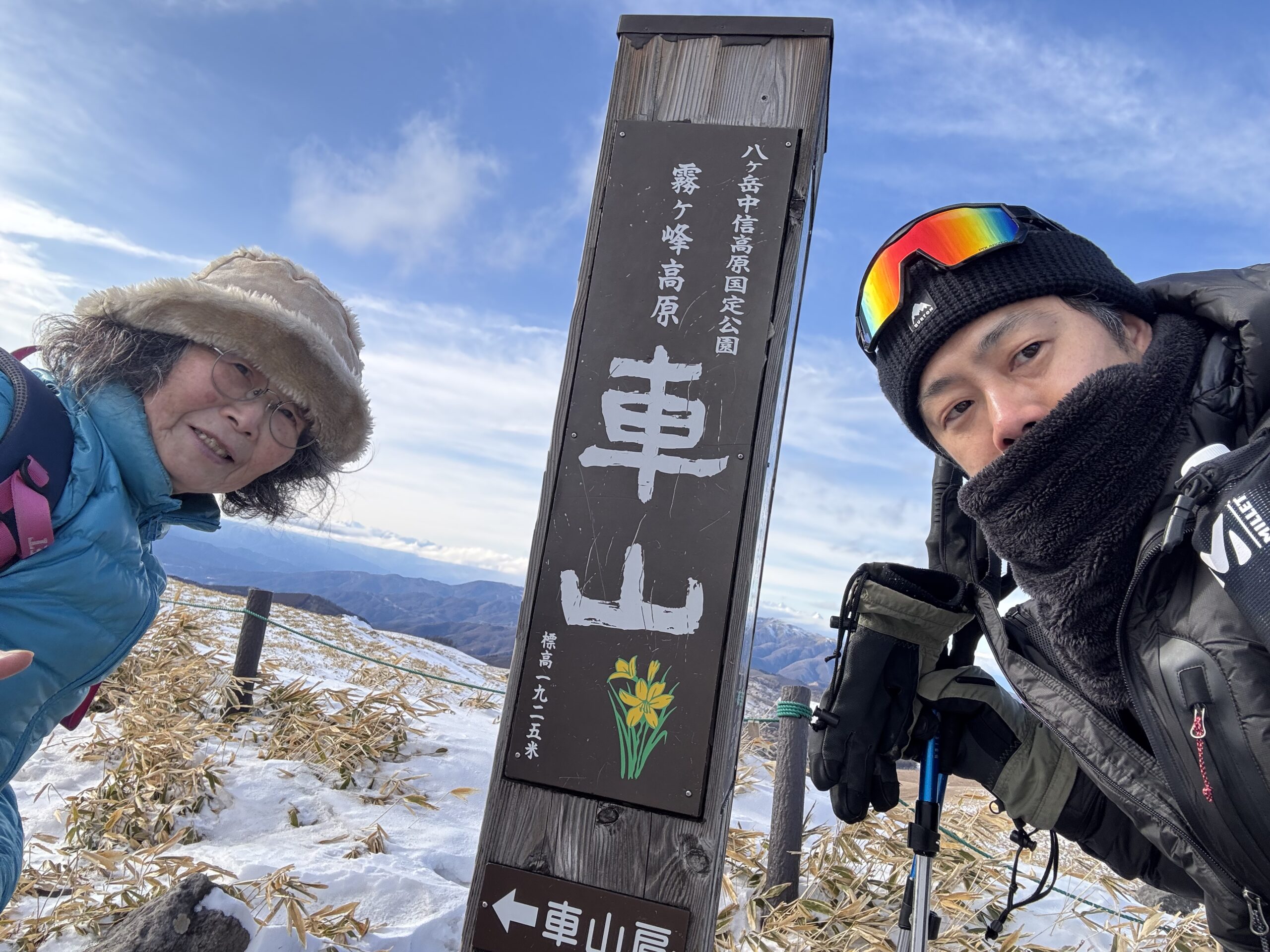 霧ヶ峰・車山は「最初の雪山」として本当に優れた山だと思います。危険箇所がなく、標高差が少なく、それでいて山頂からの展望は日本最高クラスといっても過言ではありません。寒波の日でも、風次第では穏やかに歩けることがあります(ただし風が強い日は難易度が上がります)。高齢の親と冬の景色を共有したい方に、強くおすすめしたいコースです。