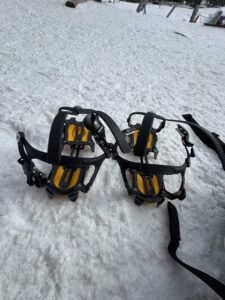 選んだのはアベニュー(AVENEW)の軽アイゼン(10本爪)。ベルト式で取り付けが簡単なのが特徴で、現地での装着スピードが速い点が気に入っています。もちろん、ギアは現地で初めて使うとタイムロスになるので、事前に家で装着の練習をしてから臨みました。これは登山ギアの基本ですが、特にアイゼンは手が冷えた状態での装着を想定して練習しておくことをおすすめします。
