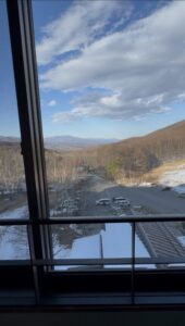 和洋室の部屋からは嬬恋村の高原や百名山を含む山々を眺望できます。窓を開けると広がるのは、雪を抱いた山並みと白樺の林。この景色を見ているだけで、日々の疲れがほぐれていく感覚がありました。「部屋からの景色がいい宿」というのは登山旅では特に嬉しいポイントです。
