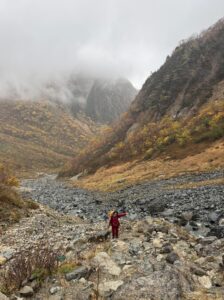 想定より1時間15分の遅れ。最終バスの時間が重くのしかかる。 横尾での休憩はわずか5分。昼食を摂る時間はもうない。エナジーゼリーを文字通り「10秒」で流し込み、すぐに出発する。足元は悪く、体温は奪われ続ける。母は「まだ4時間あるから大丈夫」と笑うが、私は万が一の停滞も想定し、神経を研ぎ澄ませた。