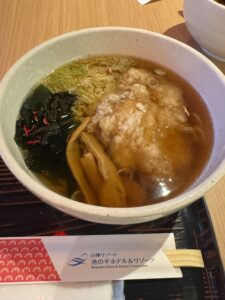 夕食と入浴は、徒歩圏内にある池の平ホテル&リゾーツへ。入浴前に信州名物「山賊味噌ラーメン」で体を温めてから温泉へ。