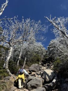 11月の霧氷を見たい登山者(七合目はアイゼン必要な時期でも南面なら可)