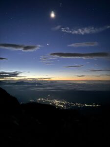 漆黒の山に、遠くの街明かりだけが浮かんでいた。