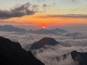 そのまま夜明け前の山荘周辺を散策し、4:30に唐松岳山頂で御来光を見る計画を立てた。