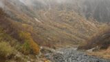 私も後を追うが、テント装備の重いザックが崖底へ引っ張る力を感じ、初めて登山で怖いと思わせられた。