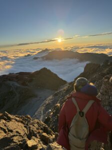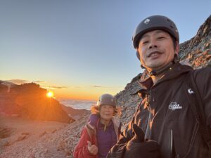 冗談なのか、本気なのか。その言葉に、こちらの緊張が少しだけ解けた。 だが、山小屋で一緒だった登山者からは「風が強くてかなり冷える」と助言をもらっていた。標高3,000mを超える世界は、地上とは何もかもが違う。 母と互いの装備を念入りに確認し、私たちは外へ踏み出した。