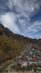 7時30分、乗越沢を過ぎたあたり。 突然、母が槍ヶ岳とは全く逆方向の、尖った山を指差して叫びました。